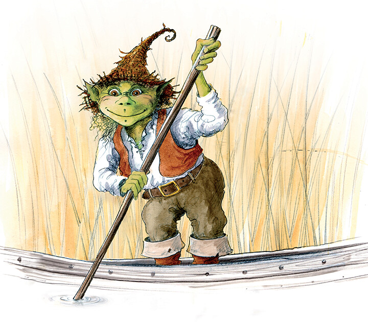Swampy is a Marsh Boggle who loves a bite of Sweetsludge Pie. He’s not all that brave, but still seems to go on an awful lot of adventures. He loves fishing amongst the reeds and bulrushes of the pongy marsh, and he’s not so keen on frightening monsters with scary teeth.