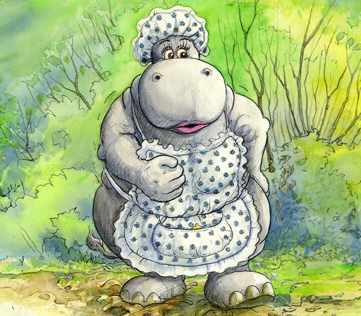 If Grizzleberries muck up your muddy marsh you can always call on Vera the Hippopotamuddle to help clean up with her enormous wooden spoon. Somehow her polka dot pinny never gets dirty and we don’t know how she does it!